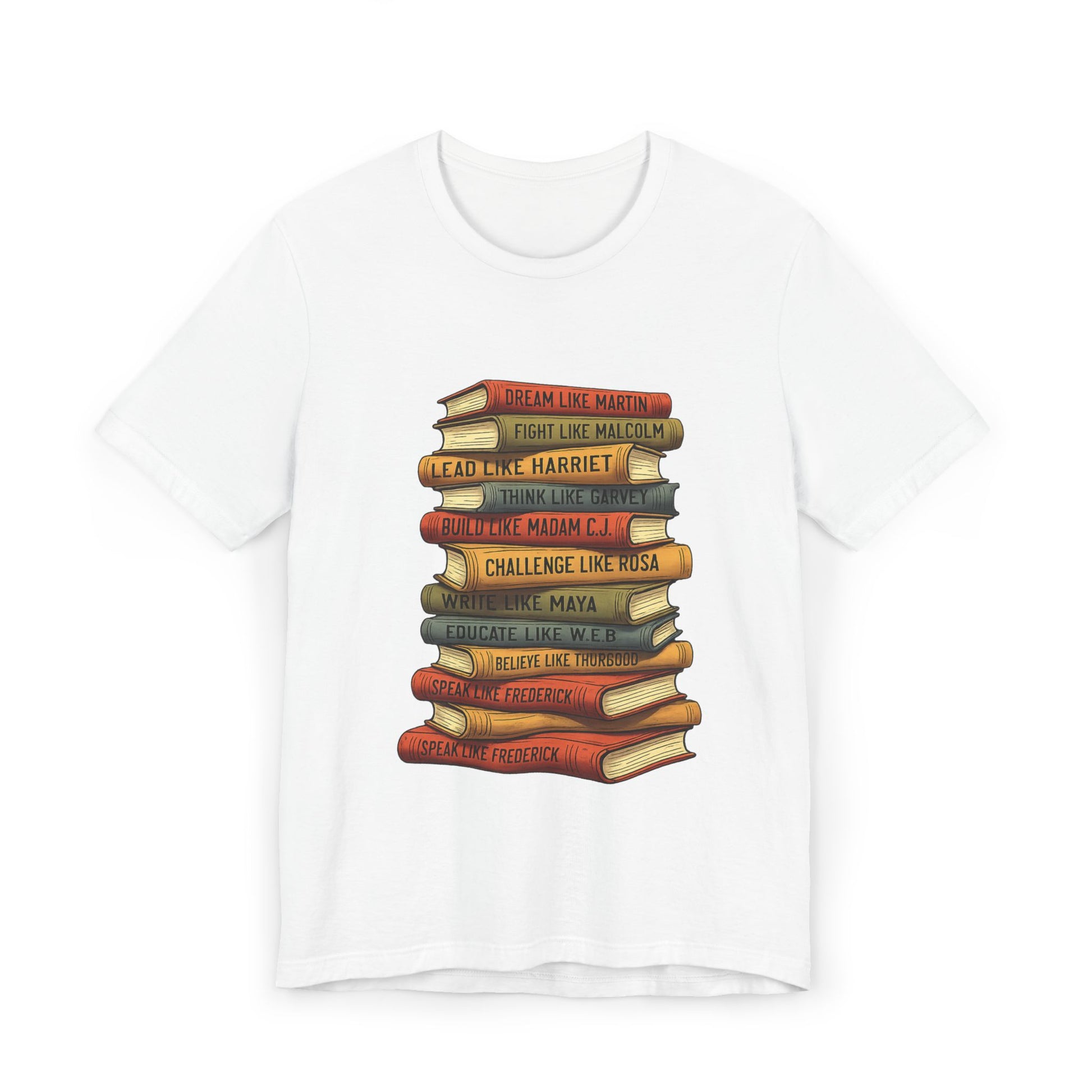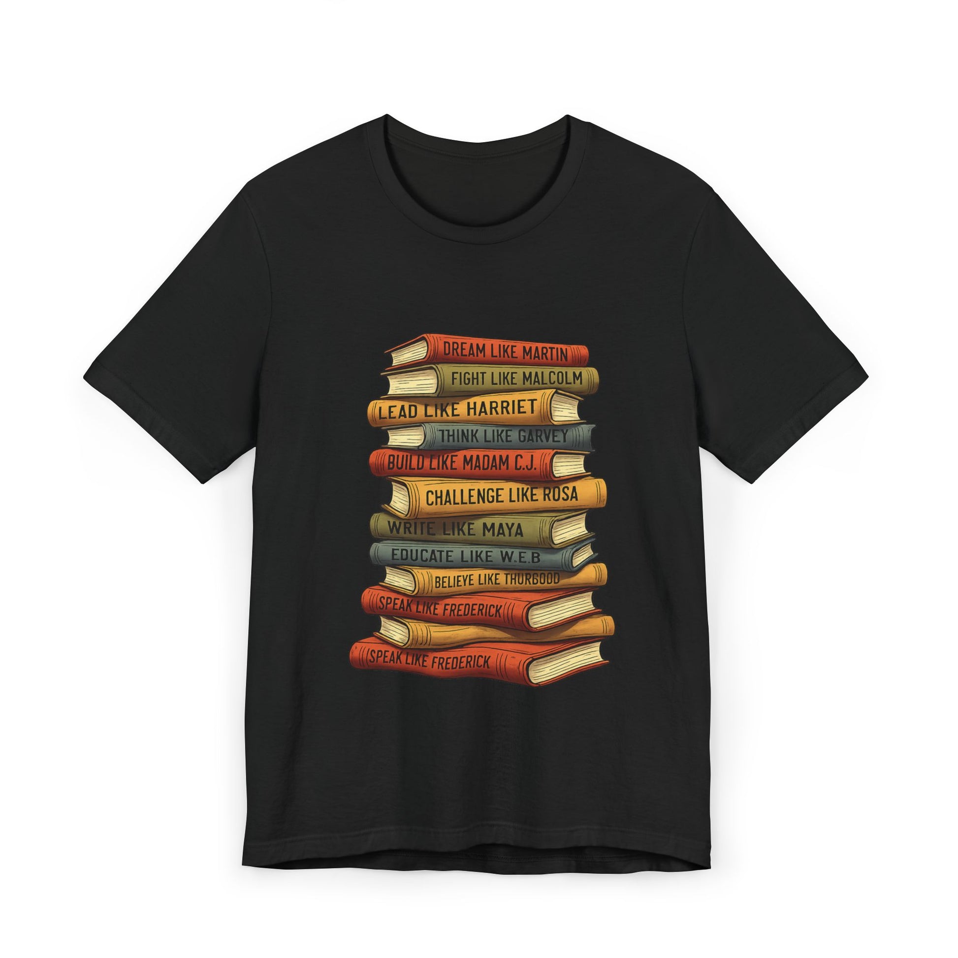 Celebrate Black history, leadership, and legacy with this powerful stacked books design t-shirt featuring inspiring words from iconic Black leaders and change-makers. Each “book” represents wisdom, courage, creativity, and resilience—making this shirt more than fashion, it’s a statement.
