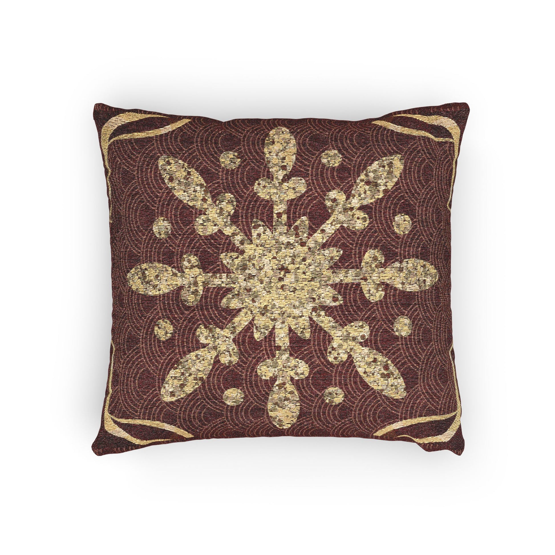 Gold Snowflake Woven Pillow, Holiday Throw Pillow | Burgundy and Metallic Accent