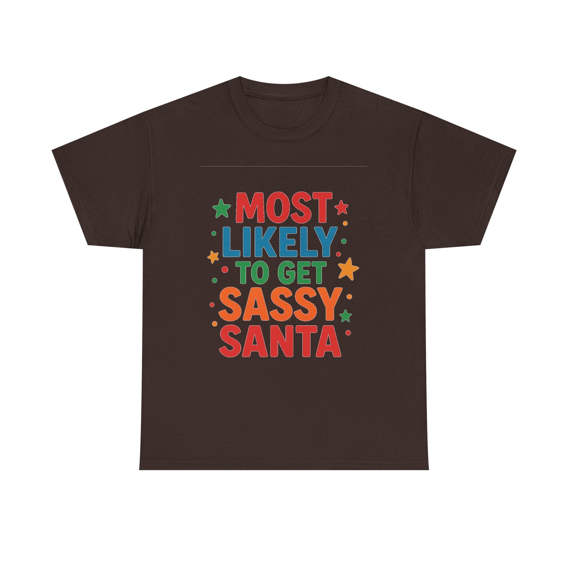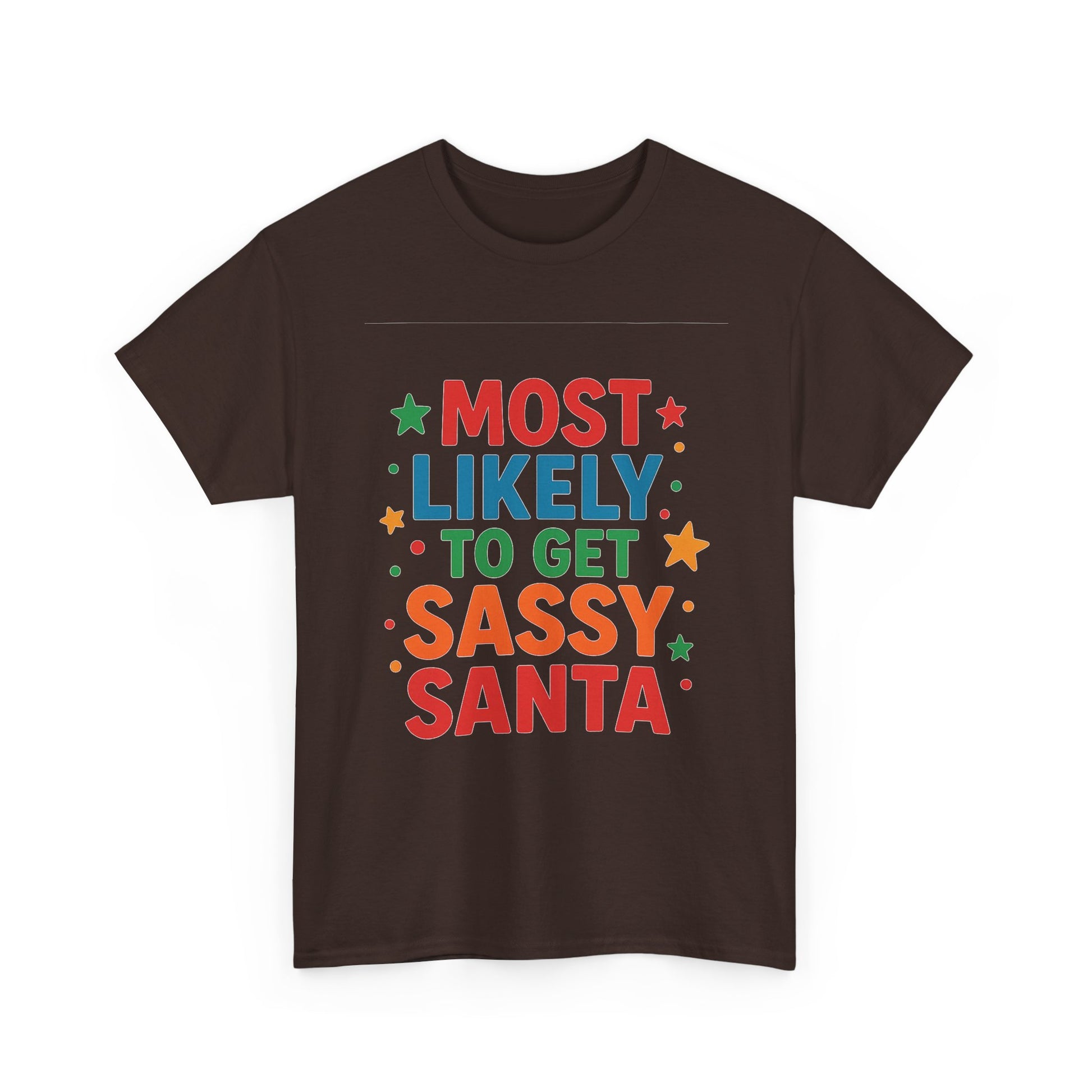 Most Likely to Get Sassy Santa T-Shirt — Funny Christmas Holiday Tee